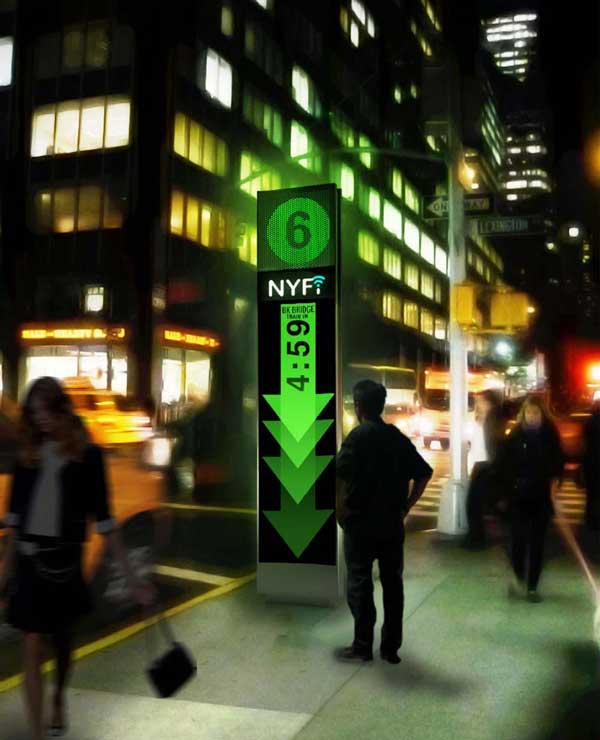 With payphone contracts expiring soon, the city wants to reinvent the underutilized sidewalk machinery as a tool for Wi-Fi connectivity (pilot programs have turned several payphones into hotspots). The mayor’s office received more than 125 Reinvent Payphone submissions; of those, one stood out both for its design and its utility. The judges awarded architecture firm Sage and Coombe‘s NYfi (a play on “Wi-Fi”) the best connectivity award, and New York citizens deemed it their favorite design.