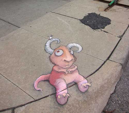 Chalk street art by prolific artist David Zinn: