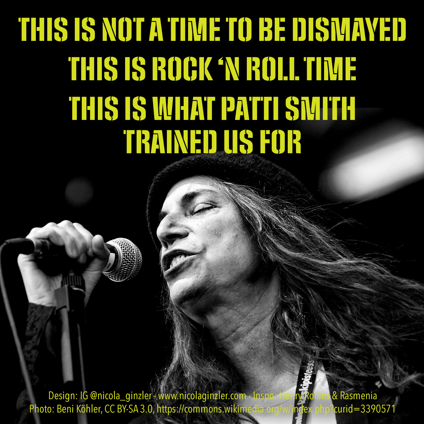 Patti Smith (https://en.wikipedia.org/wiki/Patti_Smith) is an American singer, songwriter, poet, painter, author and photographer who’s still rocking at 77 years old. She’s been fighting for the right side of history longer than most of us have been alive.