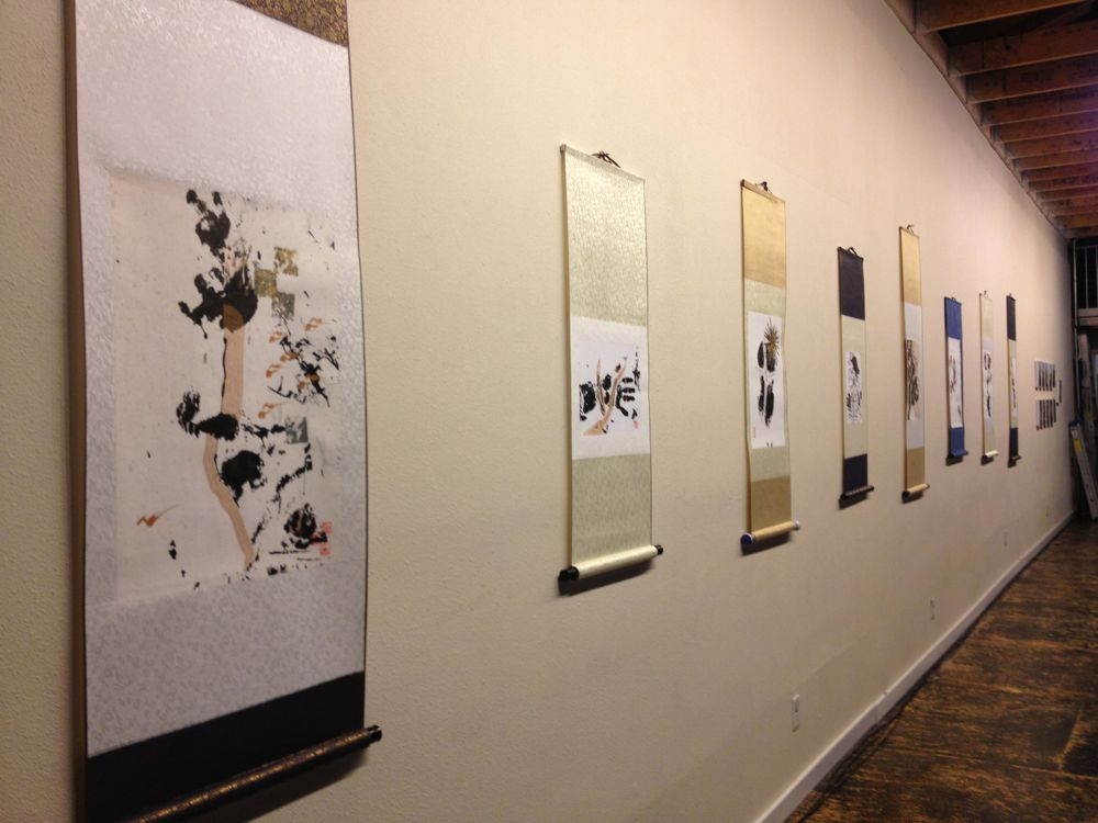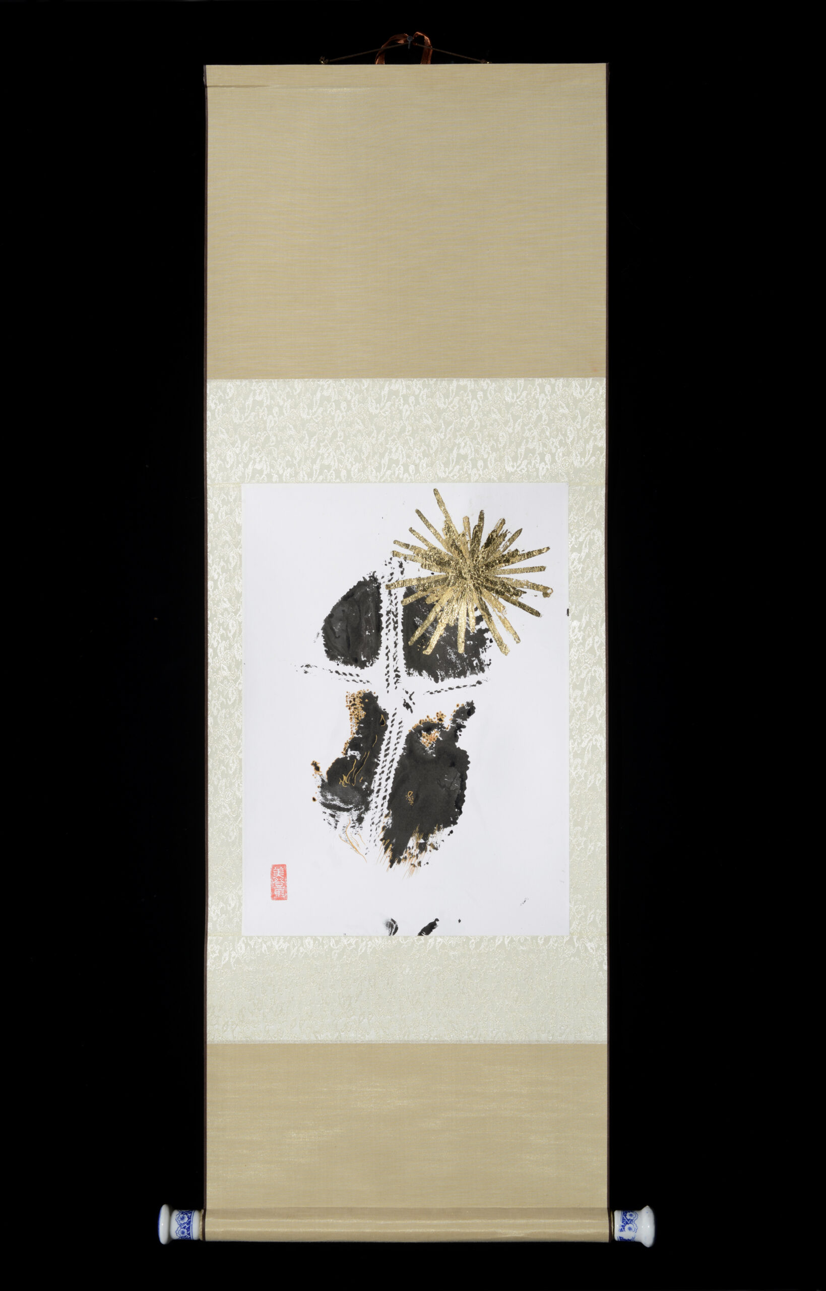 - The paper is mounted to pale cream brocade, which in turn is mounted to different colors of scroll. Click images to enlarge.