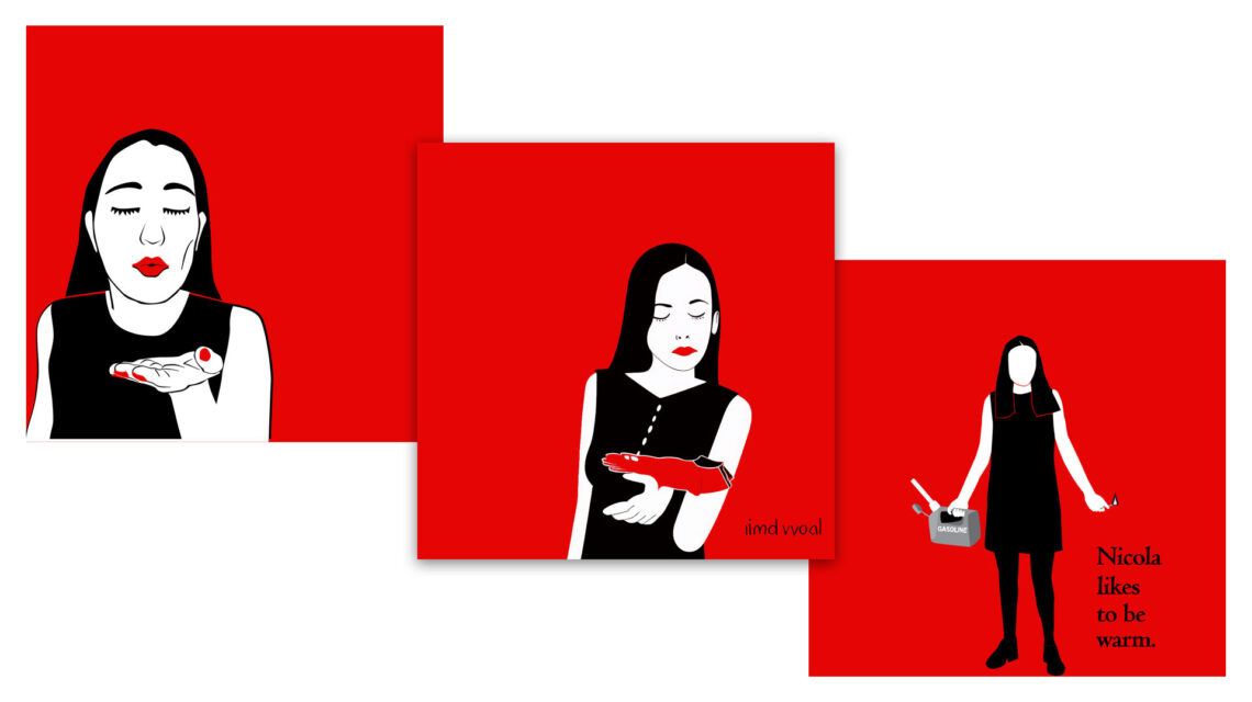 Midjourney has a /blend command which combines two to five images. I used two of my own fine art pieces, below, “Nicola Likes To Be Warm” and “Kiss (Nicola Loves You When You Leave).” I’ve had the images for a while and I wanted to see what would happen if I blended similar but not identical images, even though (as far as I can tell) that’s not what the command is for.